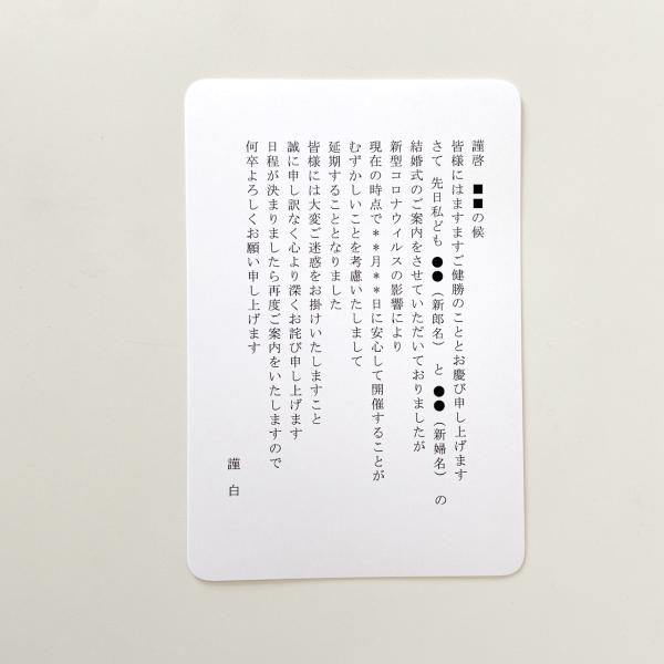 結婚式 挙式 披露宴 会食会が延期になった方へのお詫び状 Ti Amo 延期文面お詫び状 延期日未定 コロナウイルス 再招待状 結婚式 代購幫